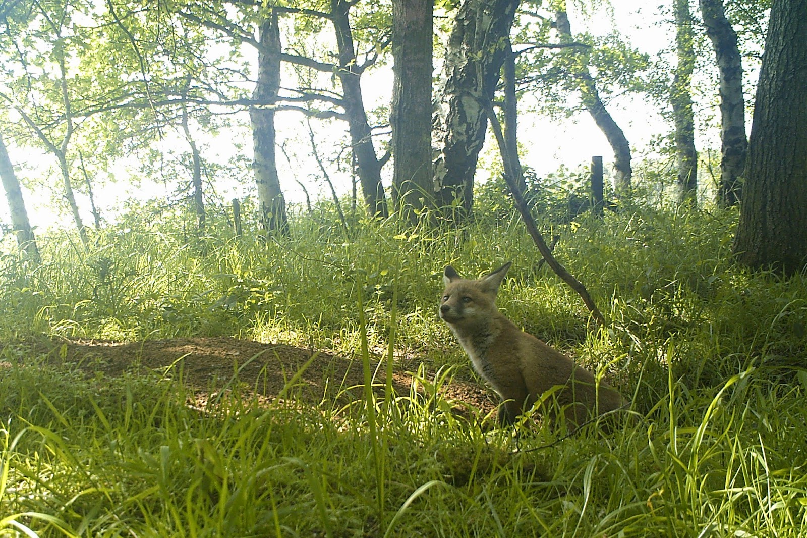 As well as the badgers, there are two fox families in Badger Wood this year. The East end family have at least three cubs and the West end family have four. I have tried watching them at dusk, but so far without success. These are rural foxes and very elusive. Camera trap photos and video that I’ve managed to get show them to be active at any time of the day or night, with no discernible pattern to their activity.